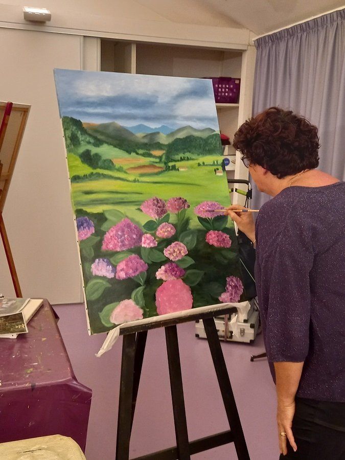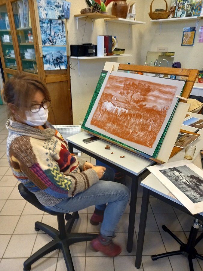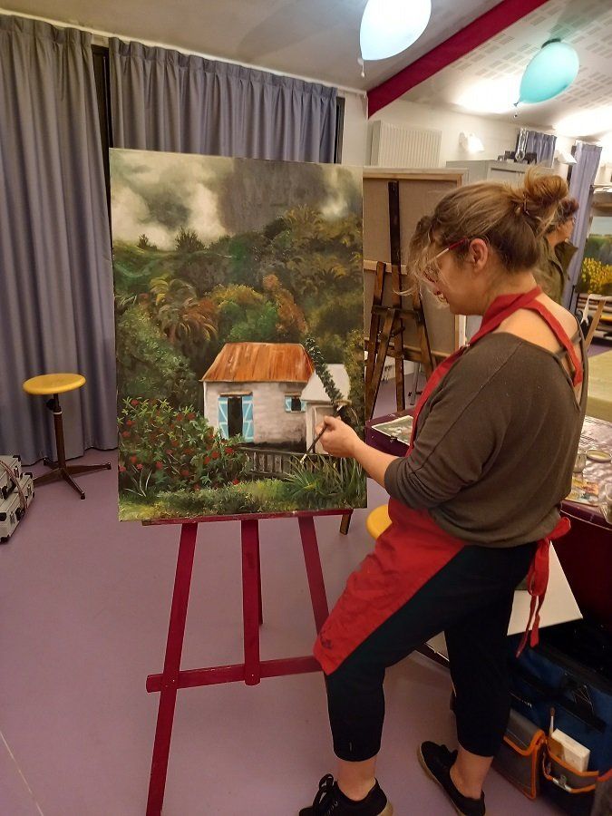 Chacun poursuit alors le cours, sur chevalet ou sur table, suivant le sujet et la technique choisie. L' élève peut alors mettre en application tous les conseils donnés durant la démonstration. Au fur et à mesure, je viens voir le travail effectué par chaque personne pour lui permettre d' avancer ou de débloquer certaines situations. Cela aide à aller toujours plus loin dans la compréhension technique ou l' exécution de l' oeuvre., ce qui permet aussi de développer au mieux son potentiel et sa créativité.